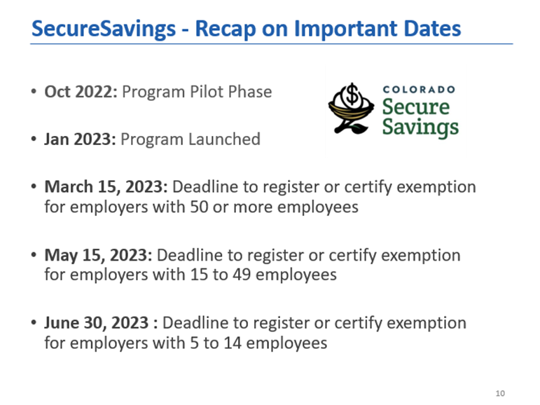 March 6, 2023 Colorado SecureSavings Program & Its Implications for Businesses Business Owner Insights